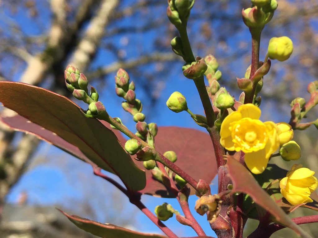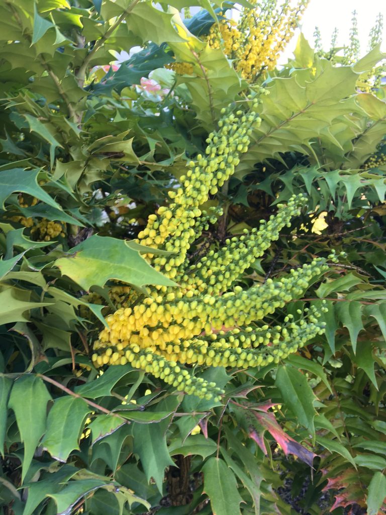 Then a whole bunch of things that are just eager to get started. This is the native Mahonia, also called Oregon grape.